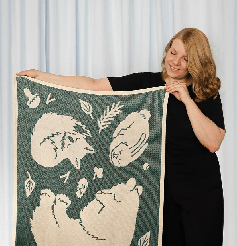 – Olin vuosia aiemmin merkinnyt muistikirjaani idean nukkuvasta karhusta ja sen kavereista. Työstin idean valmiiksi kuosiksi. Oli hienoa kuulla asiakkaan pitävän kuosin tunnelmasta ja grafiikasta, ja valitsevan sen kilpailutukseen, kertoo Ammi Lahtinen.
